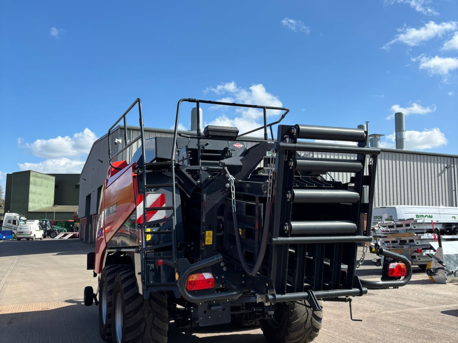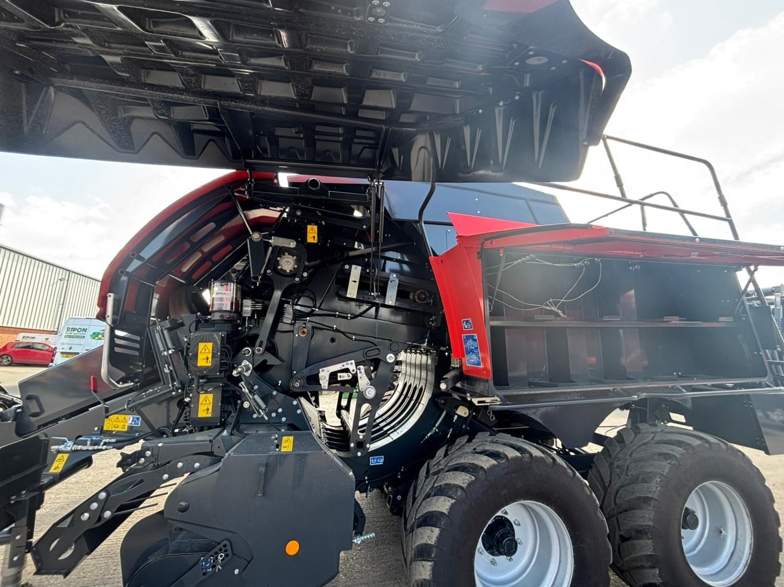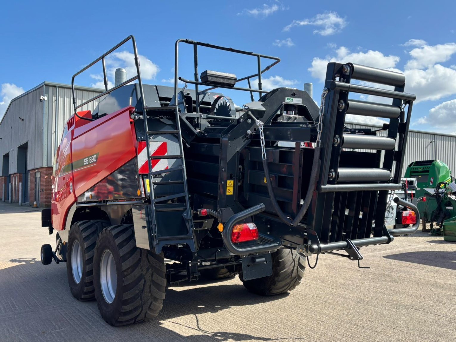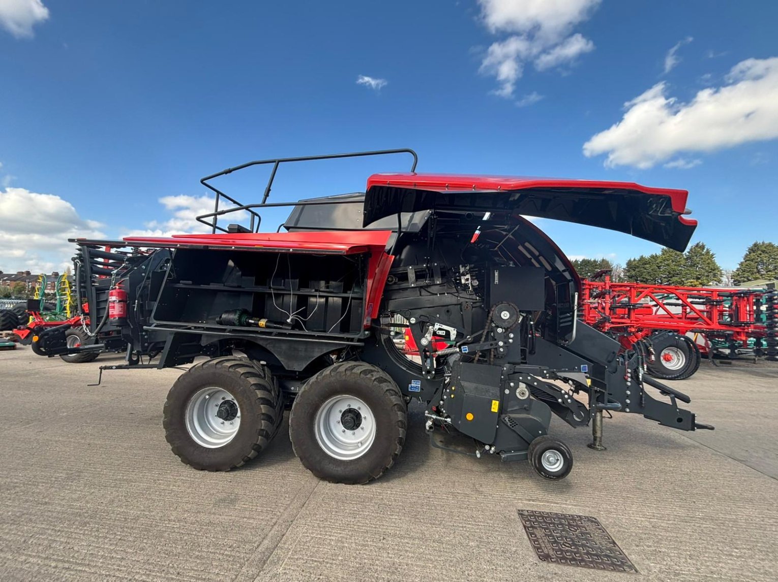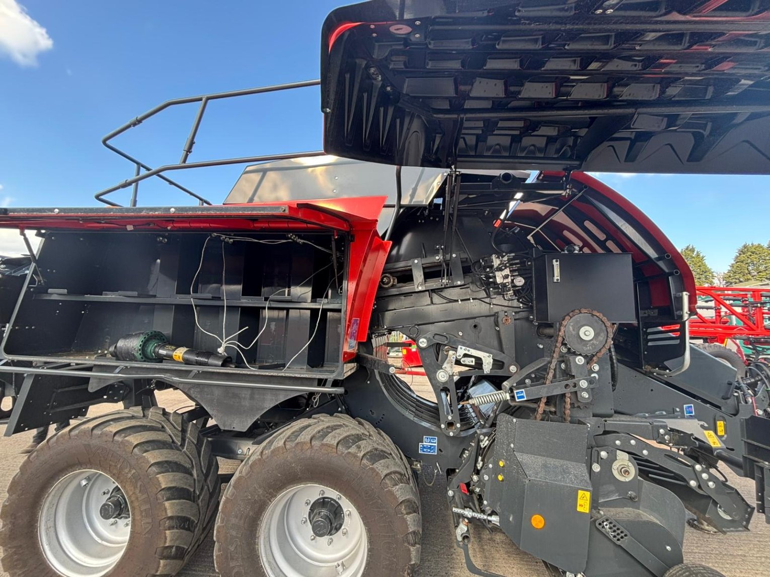 Large Square Baler c/w Omnicut 80, easy flow lit, optifeed roller bale drop sensor electric bale length, automatic flywheel overload cam clutch, tandem axle hydraulic brakes, rear wheel steering, 500/60R22.5 tyres.