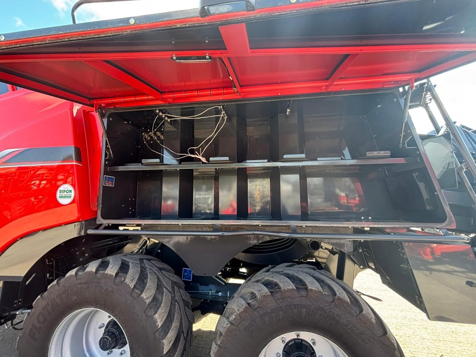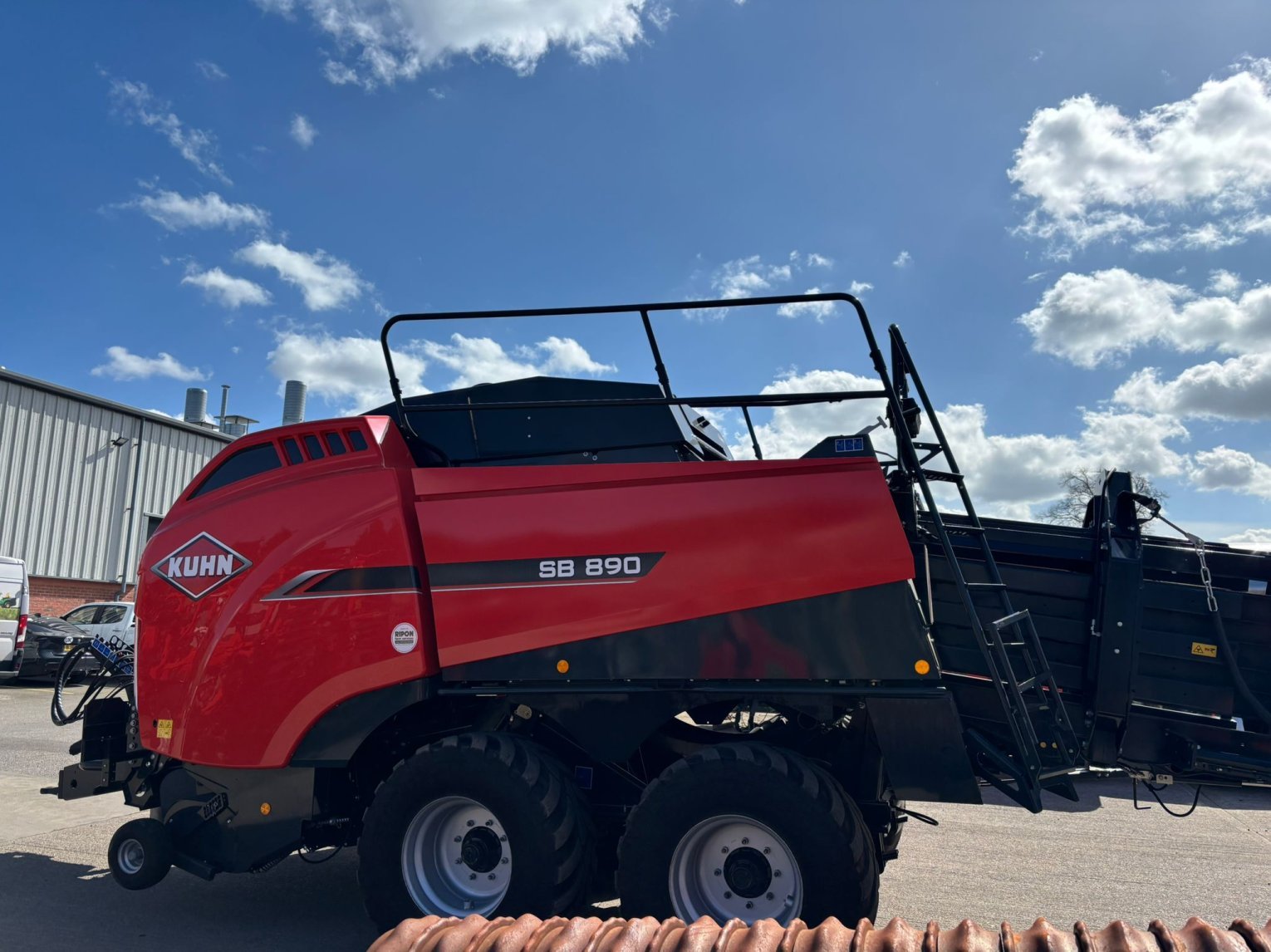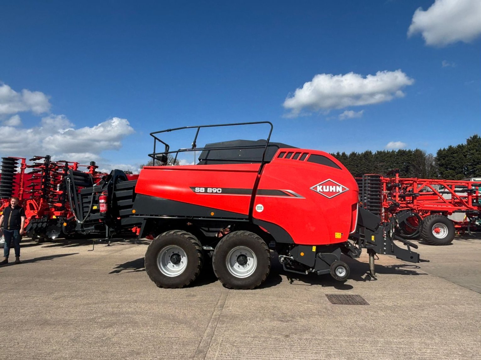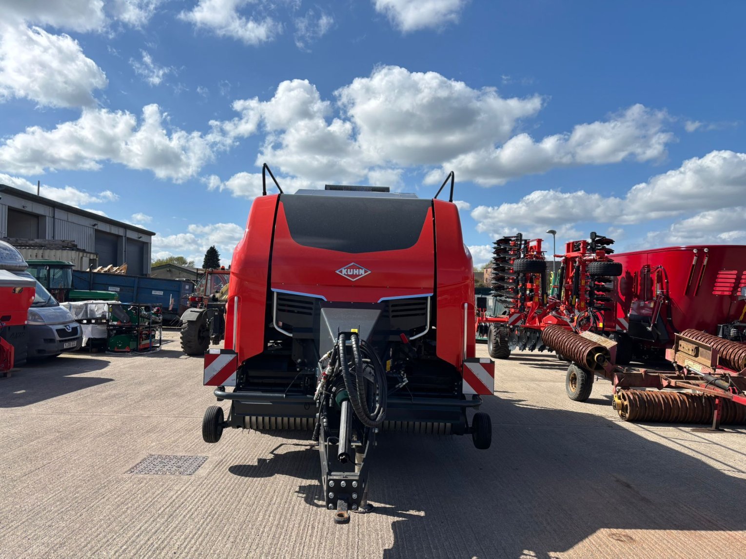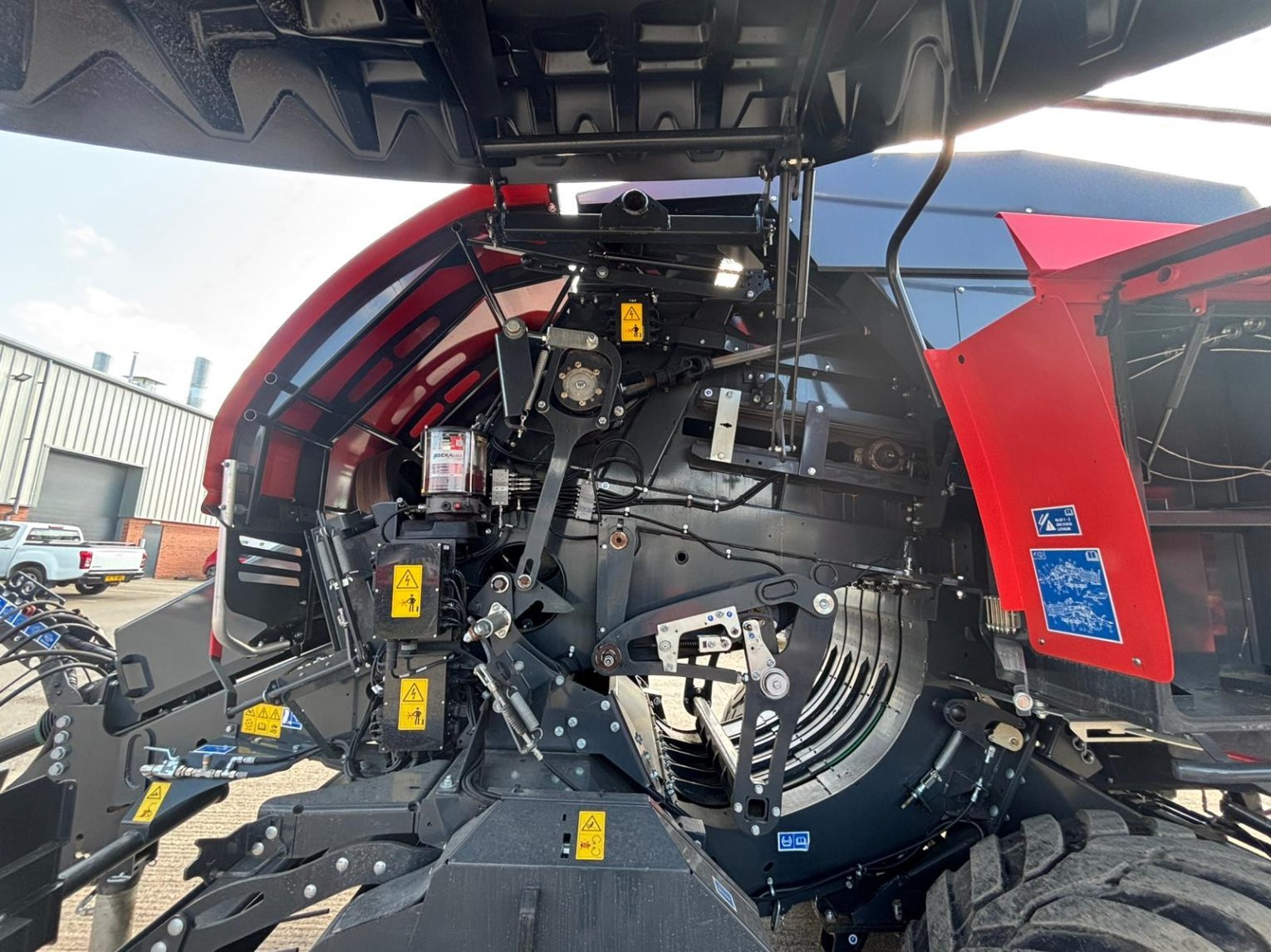 Large Square Baler c/w Omnicut 80, easy flow lit, optifeed roller bale drop sensor electric bale length, automatic flywheel overload cam clutch, tandem axle hydraulic brakes, rear wheel steering, 500/60R22.5 tyres.