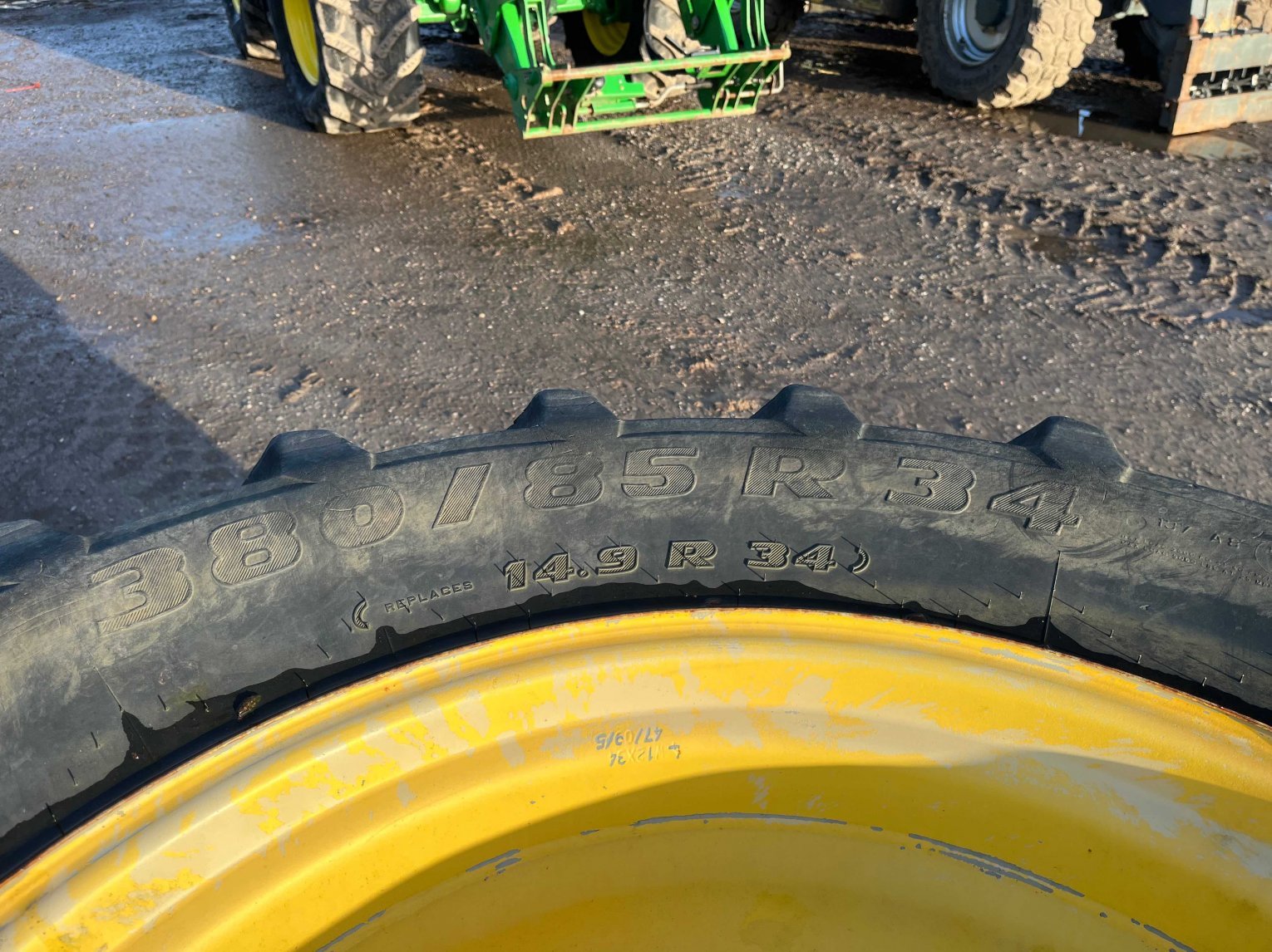 380/85R34 Trelleborg tyres. 10 stud fxd rim, 28mm hub, 33mm stud to stud, 10mm inter stud.